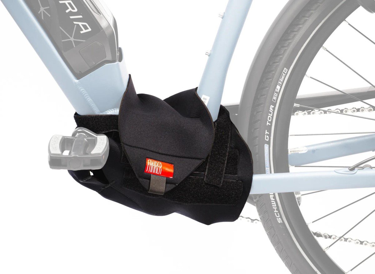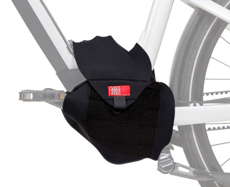 De FAHRER Motor Cover is een kwaliteitsproduct dat is gemaakt om de motor van een e-bike te beschermen tijdens transport op het dak of op een bagagedrager die op de trekhaak of achterklep is gemonteerd. Als u uw e-bike mee op vakantie wilt nemen, wordt deze vaak in of op een voertuig vervoerd. Bevestigd aan het dak of de bagagedrager, wordt de fiets tijdens het rijden blootgesteld aan slagregen en opspattend water, dat door de hoge impactdruk op de behuizing in de motor kan binnendringen. De MOTOR COVER PREMIUM, gemaakt van hoogwaardig, elastisch neopreen, beschermt de motor van uw e-bike tijdens transport tegen weersinvloeden, zoals slagregen en steenslag. Dit garandeert de langdurige werking van de motor. Het elastische materiaal van de COVERS maakt een nauwkeurige aanpassing aan middenmotoren van verschillende fabrikanten mogelijk: Let op: De Motor Cover is een transportbescherming en moet worden verwijderd voordat u gaat fietsen. De Motor Cover is niet bedoeld om de motorbehuizing droog te houden.. De gaten in de onderkant van de hoes voeren regenwater af. Als reiniging nodig is, raden we aan om het met de hand te wassen met een milde zeep. Eigenschappen: geschikt voor elke e-bike met middenmotor zoals BOSCH, SHIMANO, IMPULSE, YAMAHA, BROSE, TranzX en PANASONIC kan worden aangepast aan individuele frame- en motorgeometrie. correct gemonteerd past het strak om uw motor en frame en veroorzaakt het geen krassen zoals losse tassen in de luchtstroom tijdens het rijden. De Motor Cover is een transportbescherming (moet worden verwijderd voordat u gaat fietsen) en is niet gemaakt om de motorbehuizing droog te houden. Materiaal: hoogwaardig neopreen. Eenvoudig te monteren. Variabele pedaalpositie mogelijk, links of rechts naar voren en ca. 45 graden omhoog of omlaag om aan te passen aan de achterdrager. Past op alle e-bikes met middenmotor zoals BOSCH, SHIMANO, IMPULSE, YAMAHA, BROSE, TranzX en PANASONIC. Ontworpen in Berlijn en geproduceerd in de EU. Montage: Plaats de MOTORCOVER op de motor vanaf de ketting-/tandriemzijde met de klittenbandsluitingen open. Plaats het grote lipje rond de onderkant van de motor en vouw het om naar de andere kant van de motor. Bevestig de flap met de klittenbandsluitingen. Rijg tot slot de bovenste flap met het logo van de coureur tussen de onderbuis van het frame en de motor, trek strak en sluit met de klittenbandsluiting.