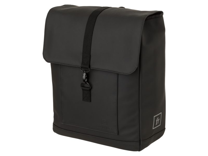 De Jaxx II Enkele Fietstas is een fietstas, rugzak en schoudertas is een. De mat zwarte en minimalistische look maken dat je zowel op als naast de fiets stijlvol onderweg bent. De tas heeft een inhoud van 14 liter. De tas heeft een klepsluiting met een gesp en klittenband. De tas is eenvoudig te bevestigen met het premium AGU Click’nGo Fixed Hook bevestigingssysteem. Op de voorkant van de tas zit een extra opbergvak, en binnenin zit een laptopvak tbv een 14 inch laptop en een klein opbergvakje met een ritssluiting. De binnenvoering van de tas kan afgesloten worden met een aansnoerkoord. De tas is aan de achterkant extra verstevigd. Aan beide zijkanten van de tas is er reflectie, in de vorm van het Fastrider logo. Maak van iedere rit een stijlvolle en comfortabele rit met de Jaxx II Enkele Fietstas Rugzak.