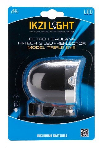 IKZI koplamp Triple Eye zwart met E1 keur, 10 lux, incl batt 4x AAA, herkenbaar tot 1000 meter