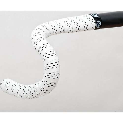 Bike Ribbon stuurlint PU Color Perforated. Materiaal: EVA foam met PU oppervlak voor extra grip. Comfort score 5/6. Grip score 5/6. Gewicht: 85 gram. Inhoud: 2x lint lengte 210cm x 3mm, 2x korte stukjes lint, 2x afwerktape, 2x eindplug.