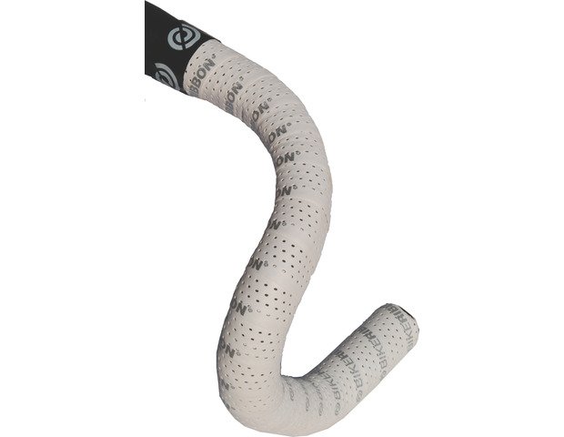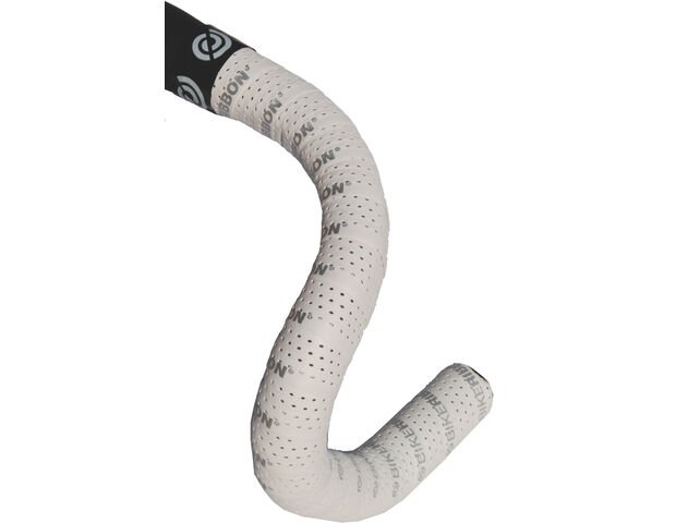 Bike Ribbon stuurlint PU Perforated. Materiaal: EVA foam met PU oppervlak. Comfort score 4/6. Grip score 4/6. Gewicht: 65 gram. Inhoud: 2x lint lengte 210cm x 2.5mm, 2x korte stukjes lint, 2x afwerktape, 2x eindplug.