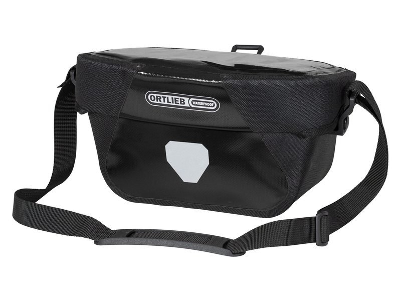 Compacte stuurtas met afsluitbare magnetische dekselsluiting; transparant dekselvak voor smartphone, GPS of landkaart; inclusief afsluitbare houder; voor sturen met een diameter tot 31,8 mm; PVC-gecoat polyesterweefsel; binnentas met ritssluiting; schouderdraagriem; reflector. Optioneel verkrijgbaar: kaartentas (F1402), Safe-it, E-Bike montageset voor het stuur, de tas past ook aan de KLICKfix houder van Rixen&Kaul.
