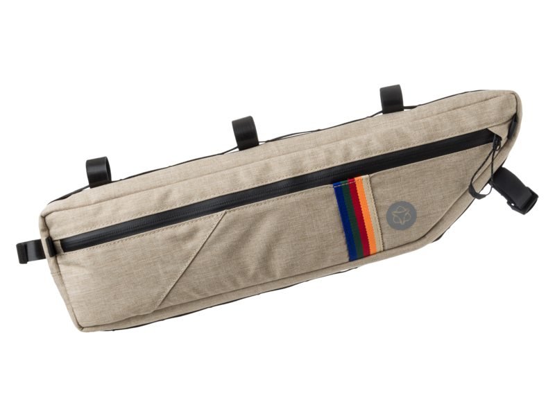 De Venture Frame Bag is gemaakt van Greensphere, waterafstotend polyester. Het Frame Bag is voorzien van een waterafstotende YKK rits en heeft een groot compartiment met een doorgang voor een hydratatiesysteem. Tevens geeft de tas een betere zichtbaarheid door de 3M Reflectie. Door middel van het modulaire bevestigingssysteem kunnen de straps op de gewenste plek bevestigd worden. De kleur variant ‘Reflectie Mist’ heeft een reflecterende overall print die zorgt voor extra zichtbaarheid tijdens de donkere dagen.